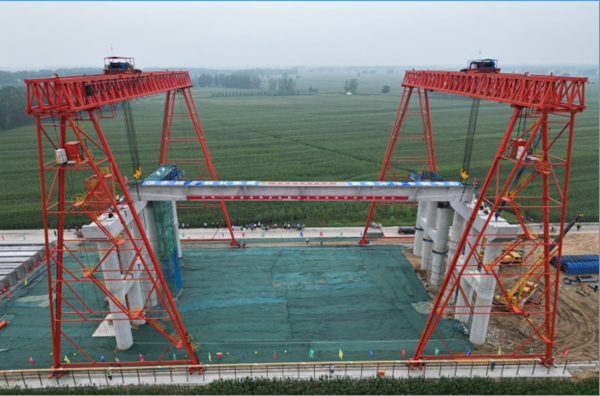 2023年8月20日10時18分,蘭封高速項目黃河大橋首片預制T梁架設成功,標志著項目進入上部結構施工,工程建設取得關鍵性進展