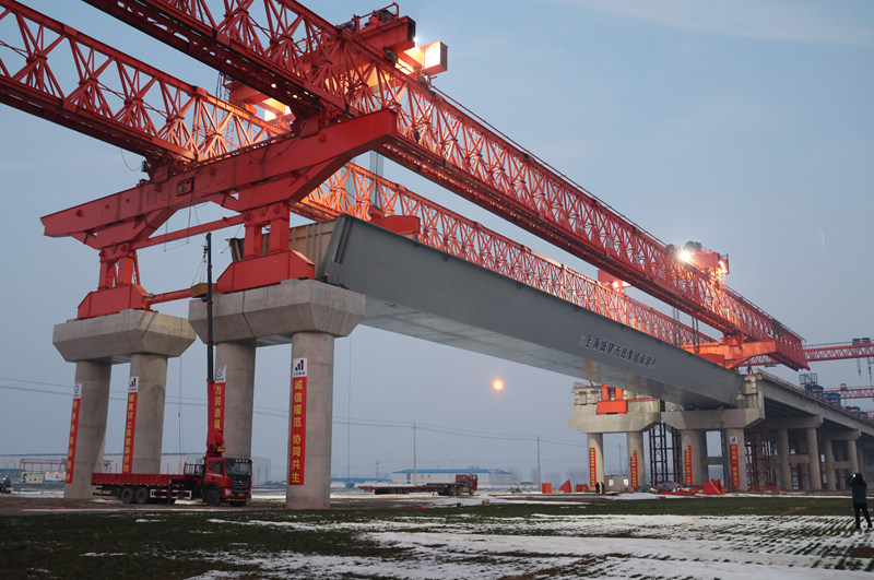 2月25日,蘭封高速項目東壩頭黃河大橋首孔100m跨徑鋼箱梁成功架設,為完成全年施工目標邁出了堅實的一步。此次架設是我國首次采用特大型架橋機整孔架設100m鋼箱梁,對我國橋梁施工具有重要意義。