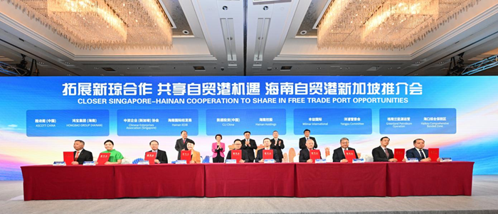 2023年11月23日下午15:00,海南省人民政府于新加坡香格里拉酒店舉辦“拓展新瓊合作 共享自貿港機遇”海南自貿港新加坡推介會,會議主辦單位海南省人民政府,承辦單位海南省商務廳、海南國際經濟發展局,協辦單位中資企業(新加坡)協會、新加坡中國商會、新加坡制作商總會。本次會議特邀鴻寶集團海南公司參加,鴻寶集團副董事長、總裁袁曉曦,鴻寶集團董事、海南鴻寶公司總經理李真,海南鴻寶公司副總經理舒舒作為代表出席會議。