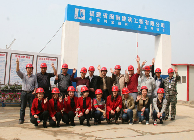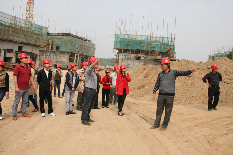下午2:30,人員在停車場集合完畢,乘坐中巴車一起前往鴻園項目工地。鴻寶置業(yè)公司積極配合集團參觀活動,對參觀路線及講解內(nèi)容進行了細致的安排。集團公司人員出發(fā)之際,置業(yè)公司的總工程師、工程管理部經(jīng)理、設計管理部經(jīng)理都已等待在建設工地的入口。集團人員到達現(xiàn)場,領取了安全帽后,參觀活動正式開始。