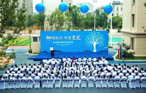 2018年6月9日,金水區(qū)第二實驗小學在鄭州市政府、金水區(qū)政府領導的共同見證下,由鴻寶集團正式移交給金水區(qū)教體局!本次交接儀式是金水科教園區(qū)發(fā)展史上最具里程碑的事件之一。至此,大家期盼已久的金水區(qū)第二實驗小學,終于由暢想變?yōu)楝F(xiàn)實。