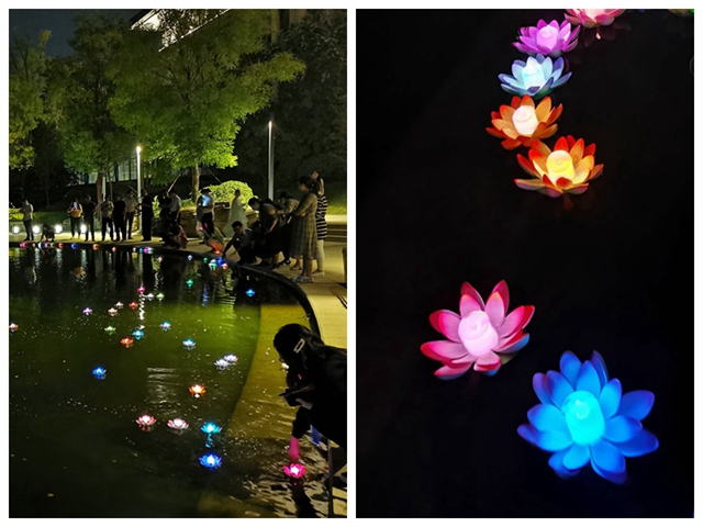 最后,鄧總帶領大家移步桂湖湖畔,許下心中的愿望,點亮載滿各自心愿的花燈。伴隨著悠揚的薩克斯旋律,小小一盞花燈隨著碧波浪蕩而行,載滿了每個人的心愿,承載著中國文化的律動,更描繪著鴻寶人于幸福明天的向往和濃濃的家國情懷底色。