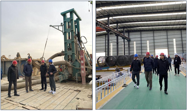 袁董事長一行在各參建單位負(fù)責(zé)人陪同下,深入施工現(xiàn)場,實地調(diào)研項目黃河大橋樁基施工、鋼筋加工中心、混凝土攪拌站、預(yù)制梁場建設(shè)情況,詳細(xì)了解項目施工進(jìn)展、安全質(zhì)量管理及春節(jié)留守安排,高度肯定了各參建單位的辛苦付出,贊揚(yáng)了目前的施工進(jìn)度、工程質(zhì)量,并叮囑大家注意施工安全,確保安全過節(jié)。袁董事長表示,在新春佳節(jié)來臨之際,受上海城建集團(tuán)張焰董事長委托,代表鴻寶集團(tuán)聯(lián)合體祝大家新年快樂,萬事如意。他強(qiáng)調(diào),建黃河上質(zhì)量最好的橋需要大家共同努力,感謝大家的堅守。