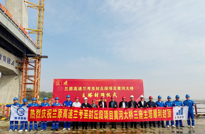 10月25日,蘭封高速項目東壩頭黃河大橋最后一座主塔——90號墩主塔順利封頂。至此,項目的控制性工程黃河大橋三座主塔提前兩個月全部封頂,標志著蘭封高速項目建設取得了重要的階段性成果,大橋建設全面進入鋼梁架設和斜拉索安裝階段。