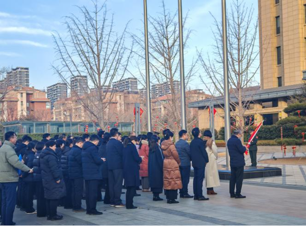 隨后,集團公司舉行春節后首次升國旗儀式,總裁袁曉曦發表國旗下講話。